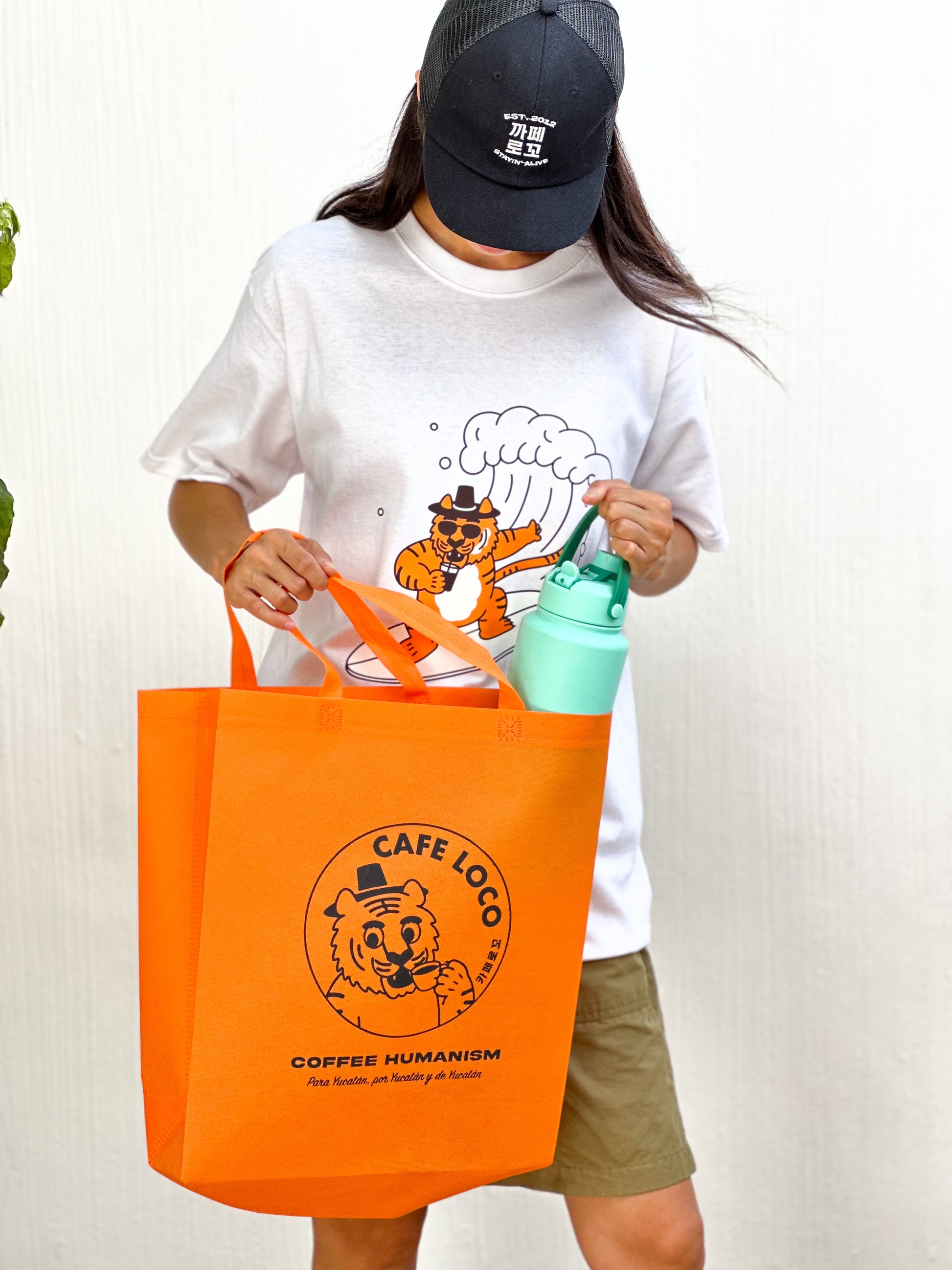 On the back, there's a symbol printed with the word 'CAFE LOCO' written in Korean.