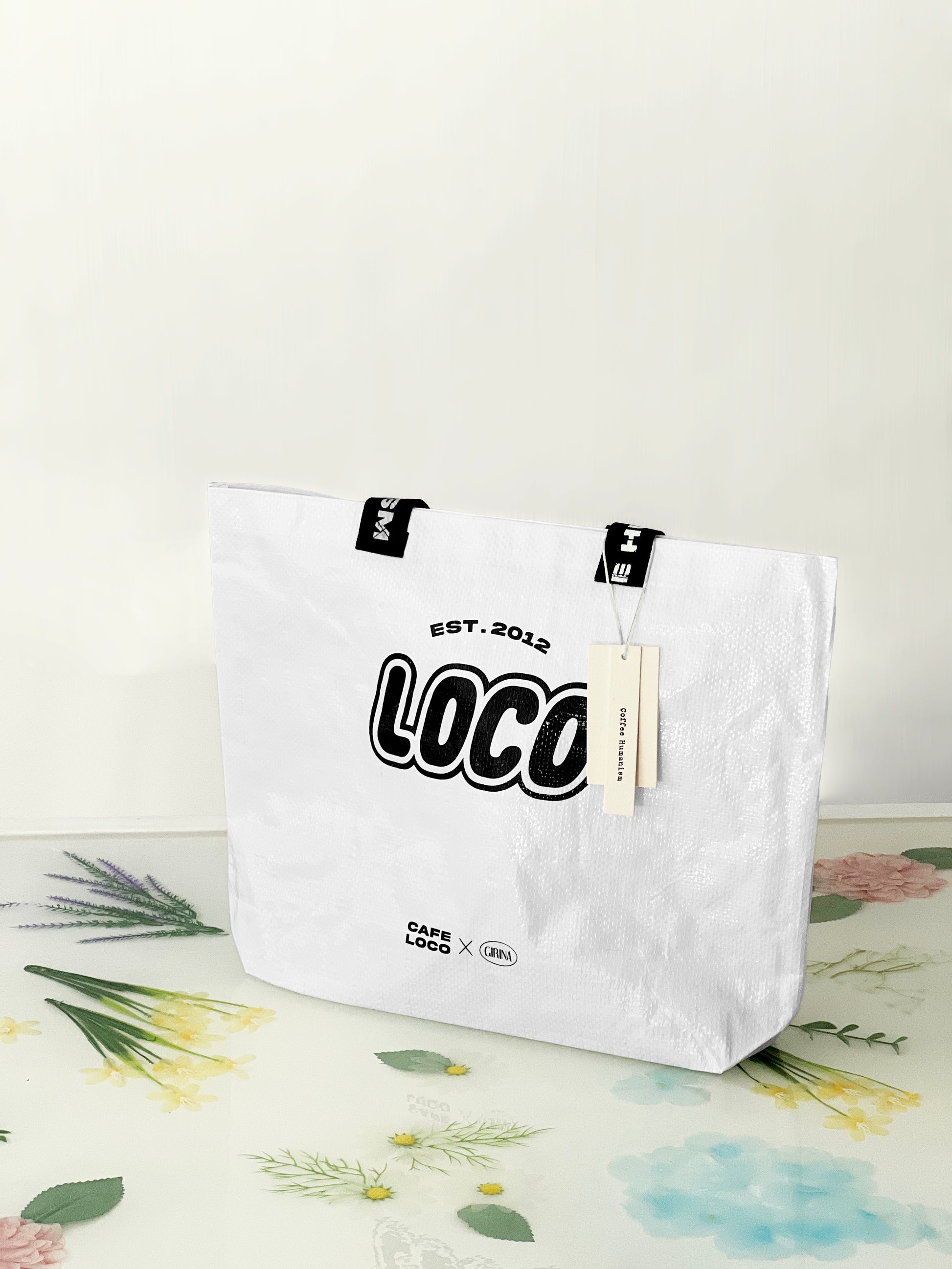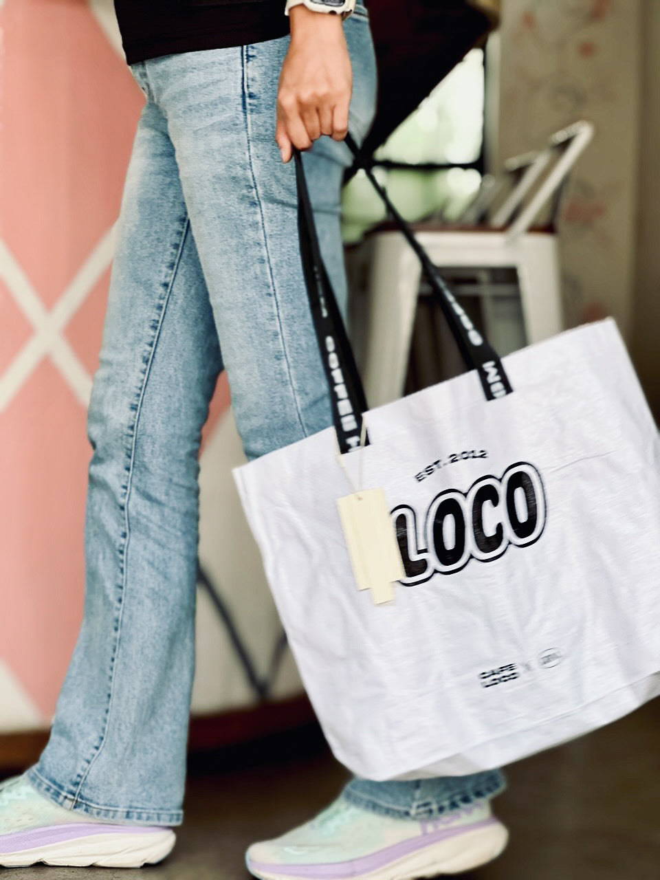 LOCO 로고가 있는 라피아 백